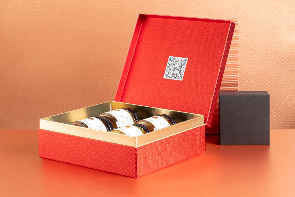 Sorprendete i vostri clienti con qualcosa di più rispetto a un semplice buono allegato. La confezione stessa si trasforma in un buono con codice personalizzato. All’interno della scatola a cofanetto si trovano dei campioni, per esempio, un assortimento di praline, cioccolatini o caramelle. La persona che riceve il regalo può quindi degustarli e sceglierne un tipo. In seguito, potrà scannerizzare il codice QR che si trova sulla parte interna del coperchio dello scrigno. Si aprirà una pagina web, ovvero la landing page dedicata al prodotto, da dove il cliente potrà ordinare una confezione più grande del dolciume scelto, utilizzando il buono.